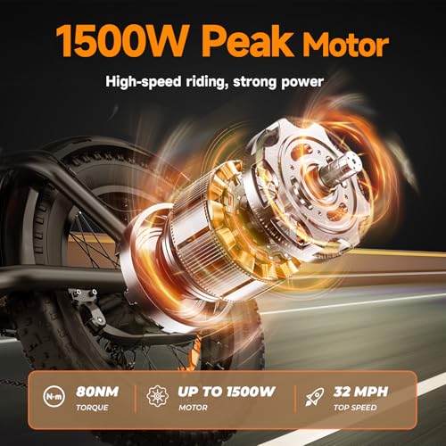 【Peak 1500W Electric Dirt Bike】Fat-tire ebike for adults with 1500W peak motor conquers 30° slopes. Experience motorcycle-level thrills at 28MPH. UL2849 certified electric mountain bike handles off-road/commuting